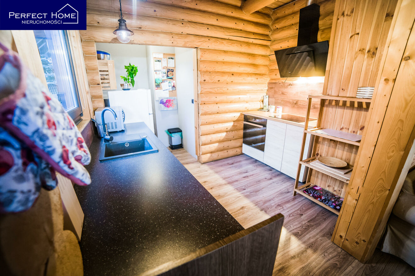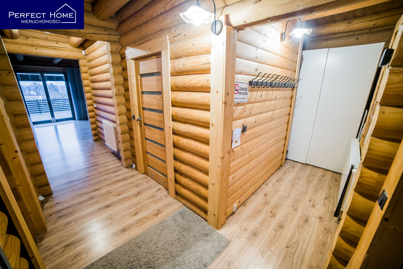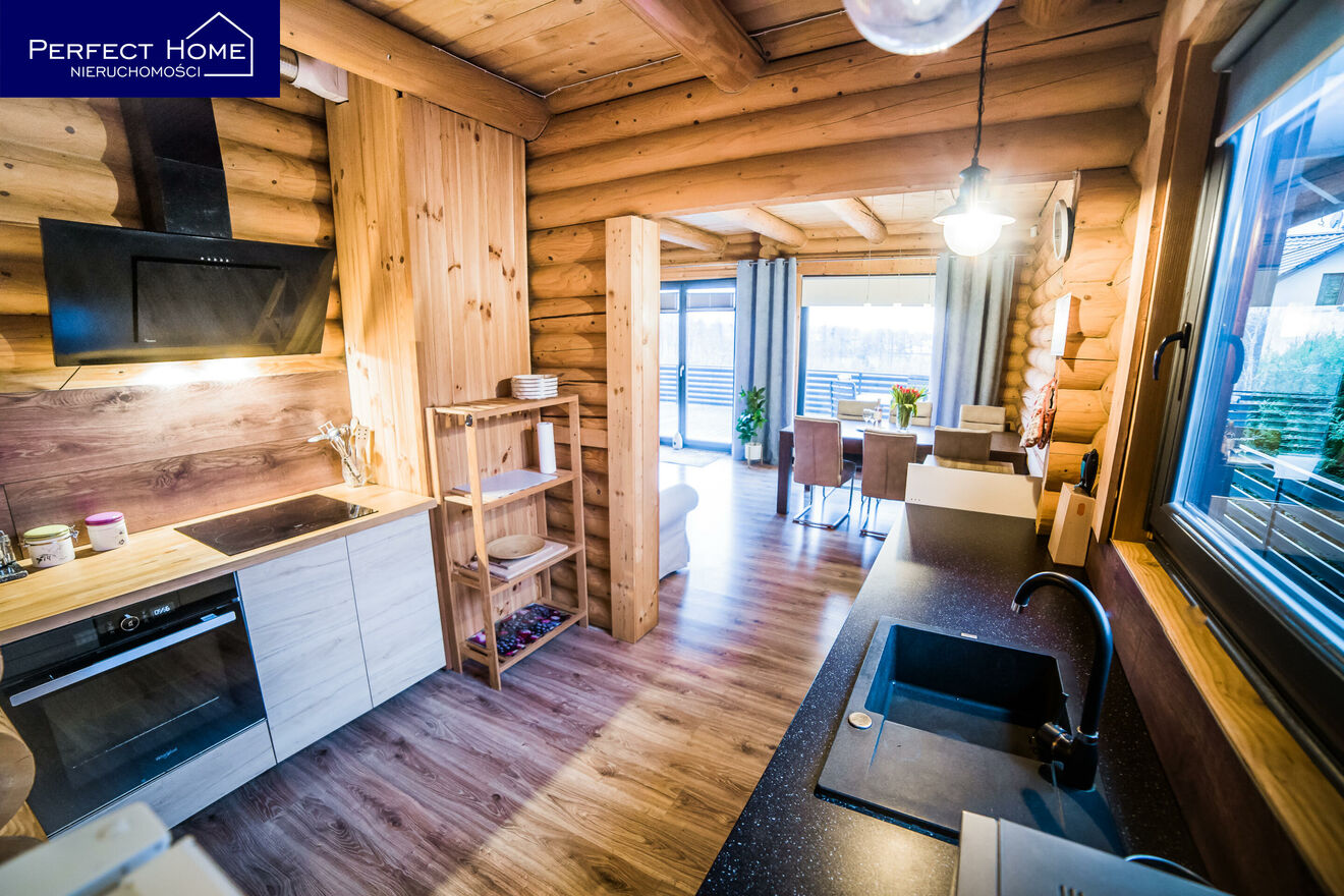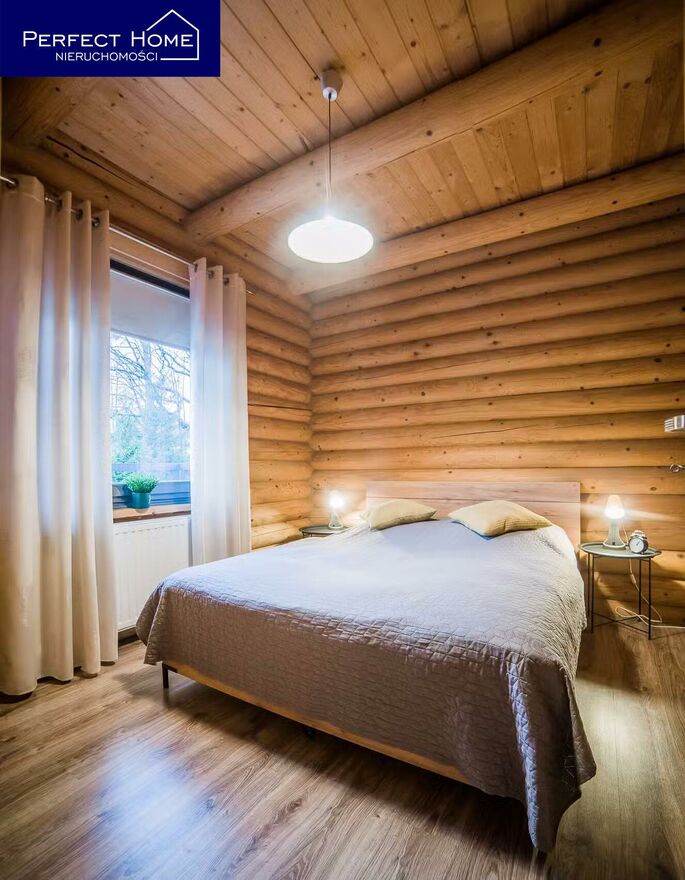 Dom został zbudowany w 2013 roku 22 cm bala świerka skandynawskiego. Każdy element tej konstrukcji został dopracowany z myślą o trwałości, estetyce i zdrowym mikroklimacie. Drewniane wnętrza otulają ciepłem, a ekologiczne farby pozwalają drewnu oddychać.